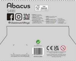 Abakus Classic World predstavlja zabavan način za usvajanje osnova matematike. Zahvaljujući šarenim 10 redova perli pomaže djeci učiti brojati i logički razmišljati. Zabava je zajamčena, i to sve s minimalnim utjecajem na okoliš.