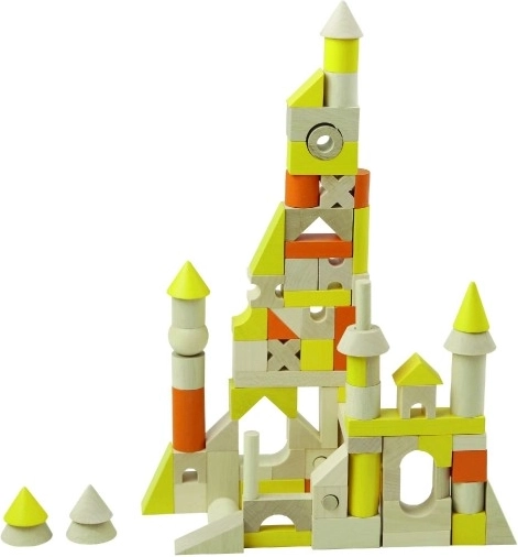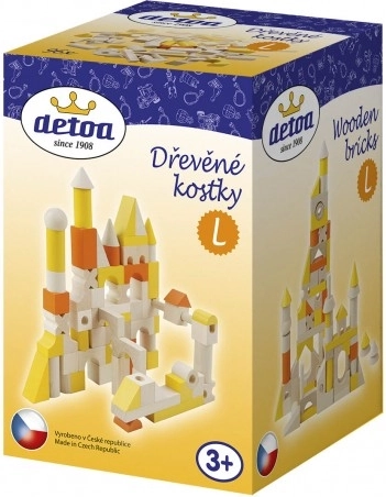 Drvene kocke Detoa odličan su izbor za djecu koja vole stvarati i slagati. Ovaj set sadrži razne oblike poput klasičnih kocki, kvadara, valjaka te netipičnih štapića, piramida i drugih zanimljivih oblika, uključujući i neke probušene. Zahvaljujući živim bojama i mnoštvu mogućnosti, ovi dijelovi savršeni su za razvoj dječje kreativnosti i motorike.