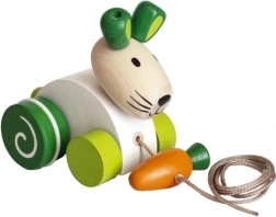 Ovaj drveni zeko na povlačenje motivira djecu na hodanje i aktivno kretanje. Zahvaljujući glatkoj obradi i robusnoj konstrukciji igračka je sigurna i ugodna za držanje. Mrkva pričvršćena na uzicu dodaje zabavan element igri i potiče dječju maštu.