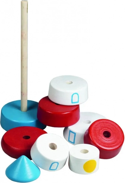 Sastavljanje na kolčić trenira koordinaciju oko–ruka, razvrstavanje prema obliku i veličini te percepciju boja. Idealna prva didaktička igračka za najmlađe.