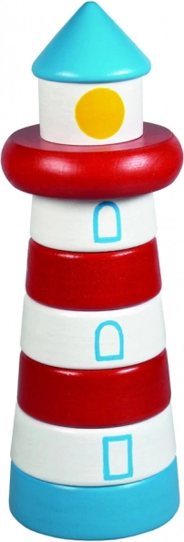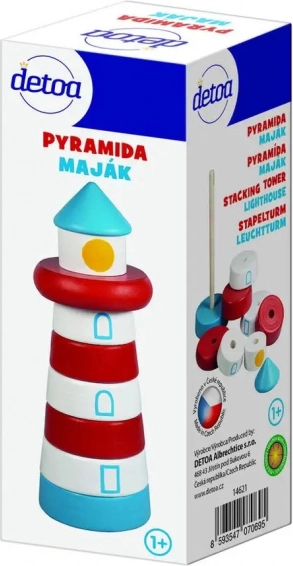 Drveni svjetionik kao slagalica piramida potiče djecu na nizanje pojedinih dijelova na kolčić prema obliku i veličini. Igra intuitivno podržava koordinaciju oko–ruka, strpljenje te percepciju boja i oblika, a ujedno ugodno stimulira osjet dodira zahvaljujući glatkoj površini.