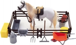 Ovaj privlačan set donosi djeci autentično iskustvo njege konja. Bijeli konj s dugom grivom i repom koje se mogu češljati potiče finu motoriku, maštu i odnos prema životinjama. Realistični sedlo i ular doprinose vjerodostojnosti i omogućuju djeci stvaranje vlastitih priča s farme.