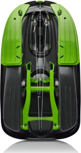 Praktični detalji, poput automatskog namotača vučnog užeta, olakšavaju rukovanje na padini, dok masivna kočnica s oprugom pouzdano vraća pedalu u početni položaj. Brzom montažom pomoću click-on mehanizma bob je spreman za akciju u trenu.