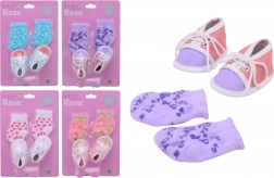 Preslatki set čarapica i cipelica za lutke idealan je dodatak za sve male mame. Savršeno pristaje lutkama veličine 40 cm i obogatit će svakodnevnu igru. Kvalitetna izrada i lako obuvanje razveselit će djecu od 3 godine.