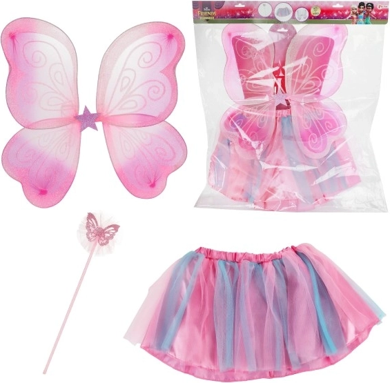Pretvorite svoju djevojčicu u vilinsku princezu s ovim fantastičnim kostimom, koji uključuje suknjicu, leptirova krila i štapić. Savršeno za karneval ili kostimirane igre.