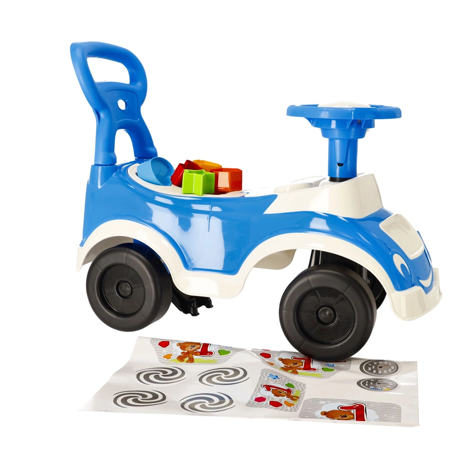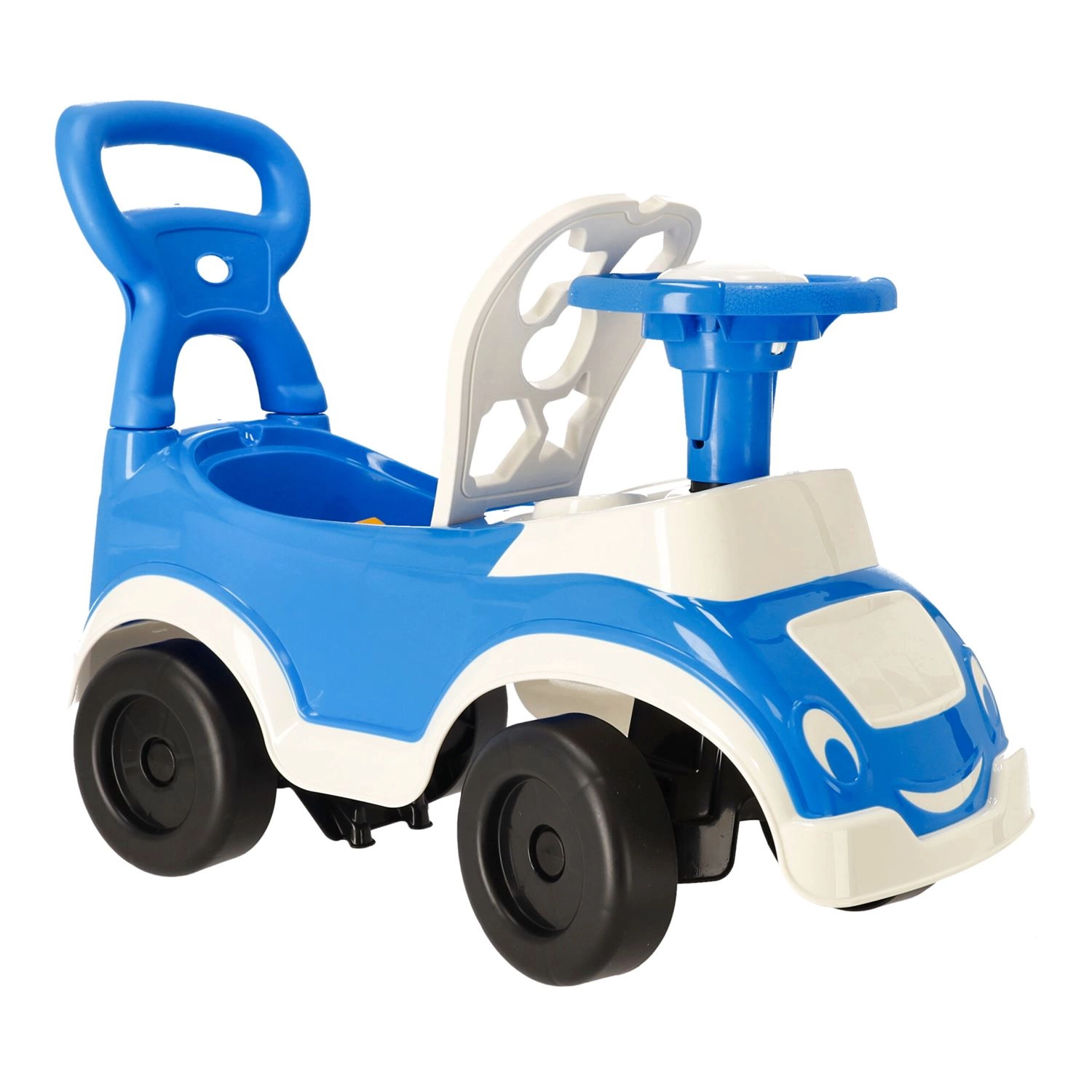 Izrađena od materijala bez kancerogenih tvari, sigurnih za dječje zdravlje. Robusna plastična konstrukcija i stabilna četiri kotača osiguravaju pouzdanost i udobnost. Pretinac ispod sjedala praktičan je za sitnice i igračke kako bi uvijek bile pri ruci.