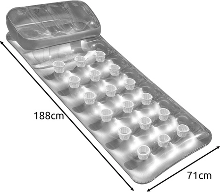 Ležaljka je dizajnirana za udoban odmor na vodi i na kopnu. Zahvaljujući integriranom jastuku uživat ćete u maksimalnoj udobnosti, bilo da čitate, sunčate se ili samo mirno plutate. Dimenzije odgovaraju i višim osobama, tako da se možete potpuno ispružiti i opustiti.