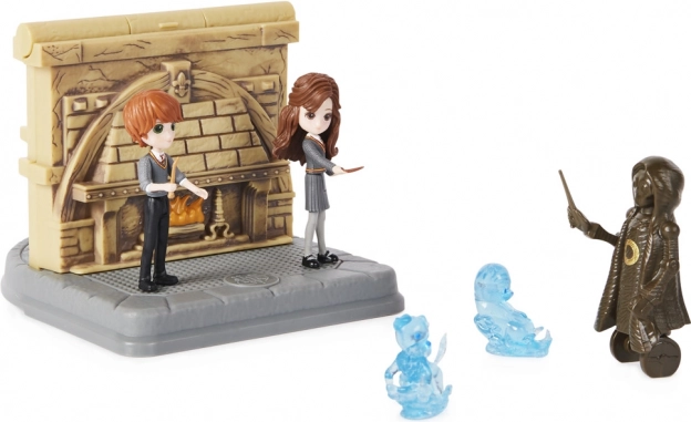 Uključene su figurice Hermione i Rona visine 7,6 cm s pomičnim rukama, prozirni Patroni – vidra i terijer – te trening lutka za čarobnjačke duele.