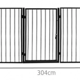 Praktična sigurnosna ograda za kamin štiti djecu i kućne ljubimce od vrućih površina i otvorenog plamena. Zahvaljujući pet segmenata na šarkama lako je prilagodite prostoru, ima jednostavnu montažu u zid, sigurnosnu zaštitu protiv slučajnog otvaranja i kompatibilna je s većinom kamina. Robusna čelična konstrukcija u crnoj boji, ukupna širina 304 cm i visina 74,5 cm pružaju pouzdanu zaštitu u dnevnom prostoru.