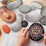 Uz ovaj kreativni set lako ćete izraditi efektne mandalinske uzorke i sjajne motive na glatkim kamenčićima. Zahvaljujući kombinaciji crne podloge, metalnih boja i samoljepljivih kamenčića vaše dekoracije istaknut će se snažnim kontrastom i sjajem. Slikanje na kamenčiće odličan je način da se opustite i pritom izradite lijepe darove ili dodatke za dom i vrt.