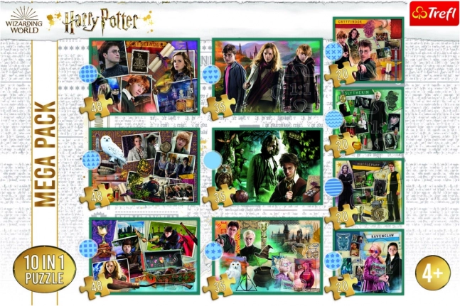 Otkrijte zabavu za male i veće čarobnjake s ovim mega setom slagalica 10 u 1 iz čarobnjačkog svijeta HARRY POTTER. Pakiranje sadrži 10 zasebnih slagalica s različitim brojem dijelova i dimenzijama 223 × 156 mm i 167 × 156 mm, tako da svatko može pronaći svoj izazov. Vrhunski materijali i kalandrirani, svjetlo-odbijajući papir osiguravaju ugodno slaganje i prekrasno zasićene boje.