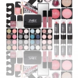 U jednoj kozmetički dobivate 16 sjenila za oči, 2 rumenila, puder, 3 ruža, olovku za oči, 4 sjajila (2 klasična + 2 kremasta), 3 laka za nokte i dodatke za uređivanje noktiju.
