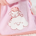 Priredite svojoj Baby Annabell čarobne trenutke s ovim modernim ogrtačem i pidžamicom. Ogrtač je ukrašen krilima, što ga čini ne samo modnim, već i udobnim dodatkom za igru. Ispod ogrtača lutka nosi kratki overál s otiskom ovčice koja uživa u duginoj kiši. Kako bi nožice lutke bile lijepo na toplom, set sadrži i ružičaste čarapice s motivom krilca.
