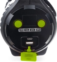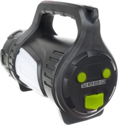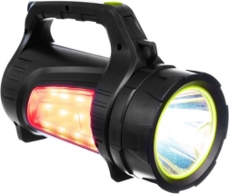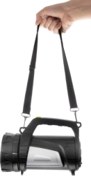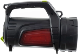 Bočna ploha pruža crveno signalno svjetlo u dva načina (stalno/puls), koje će vam koristiti u izvanrednim situacijama ili za označavanje mjesta. Integrirana baterija 3,7 V / 8000 mAh osigurava 6–8 sati rada, a putem USB-a služi kao power banka za punjenje telefona ili druge elektronike. Zahvaljujući udobnoj ručki i podesivom remenu reflektor se lako nosi u ruci ili preko ramena.