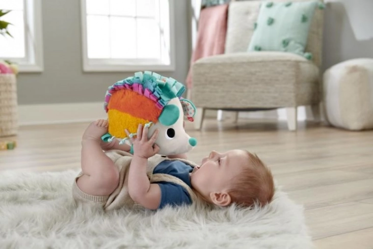 Lagan, mekan ježić dobro leži u malim ručicama, a na njega se mogu pričvrstiti dodatne igračke za kolica ili autosjedalicu.