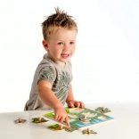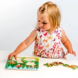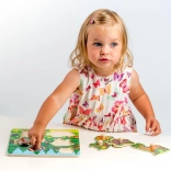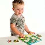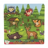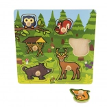 Šumski motivi poput sove, vjeverice, vepra ili jelena potiču na otkrivanje na zabavan način. Drvena podloga s okvirima drži svaki dio na svom mjestu i olakšava pravilno uparivanje prema obliku i slici.