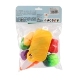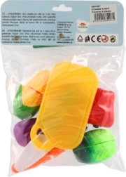 Idealno za dječju kuhinjicu, igru trgovine ili kuhanja. Set potiče razvoj koordinacije oko–ruka, učenje boja i oblika te osnove zdravog prehranjivanja kroz igru.
