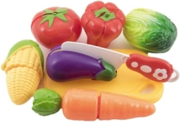 Zabavan dječji set za igru u kuhinjici sadrži plastičnu dasku, siguran nožić te povrće i voće s čičkom koje se može ponovno „rezati“. Odličan izbor za razvoj fine motorike, mašte i igranja uloga za djecu od 3 godine.