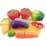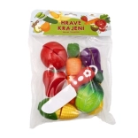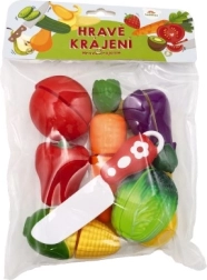Ovaj šareni set za male kuhare nudi realističan doživljaj kuhanja. Pojedini komadi voća i povrća spojeni su čičkom, pa ih djeca mogu više puta razdvajati i spajati uz pomoć priloženog nožića. Izdržljiva plastična izrada je lagana i sigurna za dječju igru.