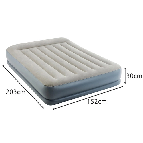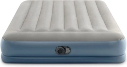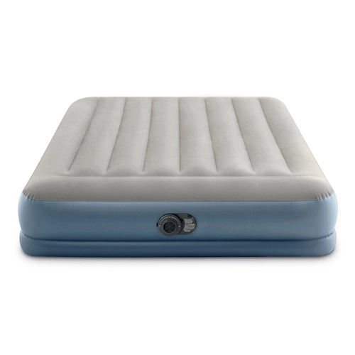 Dvoslojni napuhujući madrac INTEX s tehnologijom Dura-Beam Fiber-Tech nudi čvrstu potporu, udobnu velur površinu i brzo napuhavanje i ispuhavanje zahvaljujući ugrađenoj električnoj pumpi za otprilike 3 minute. Idealan kao udoban krevet za goste, za dom i kampiranje, s nosivošću do 272 kg i lakim spremanjem.