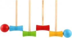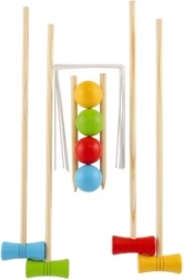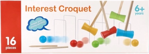 Uživajte u veselom popodnevu s drvenim kroketom koji razvija koordinaciju i preciznost. Postavite okvire prema priloženim uputama i uz pomoć palica gurnite lopticu kroz sve okvire.