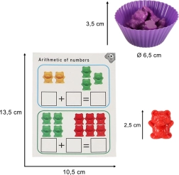 36 šarenih medvjedića u 6 boja motivira djecu na razvrstavanje, zbrajanje i uspoređivanje. Idealno za prve matematičke korake kroz igru.