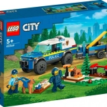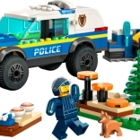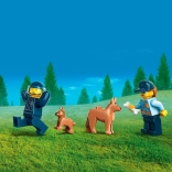 Policijski K9 SUV, prikolica, 3 prepreke (klackalica, prečka, stepenice), scena vježbališta, 2 minifigure policajaca, figurica psa i šteneta, dodaci (četka, baterijska lampa, lopata, 2 poslastice)