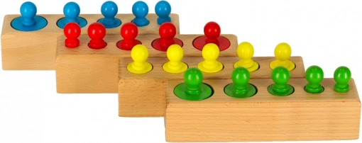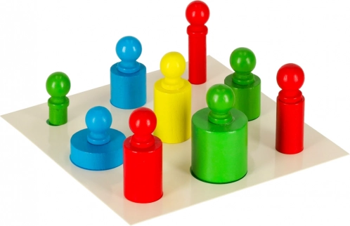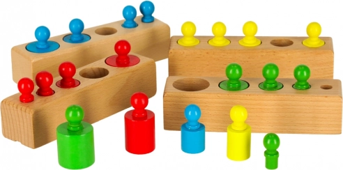 Ova drvena Montessori slagalica s raznobojnim valjcima idealno je pomagalo za svestrani razvoj djeteta. Svaka boja predstavlja drugačiju visinu i širinu, što potiče logičko razmišljanje, razvrstavanje i uspoređivanje. Jednostavan dizajn i prirodni materijali savršeno se uklapaju u filozofiju Montessori.