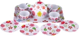 Ovaj dječji limeni čajni set donosi djeci radost zamišljenog posluživanja i društvene igre. Set je izrađen od metala, pa je čvrst, izdržljiv i lagan za male ruke. Šareni motivi cvijeća, leptira i voća potiču kreativnost i maštu, dok poslužavni pladanj olakšava prenošenje i igru.