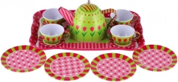 U pakiranju se nalazi sve potrebno za malu čajanku – čajnik, šalice s tanjurićima i tanjuri. Set je odličan za razvoj socijalnih vještina, učenje pravila ponašanja za stolom i zajedničku igru s prijateljima. Posuđe nije namijenjeno stvarnoj pripremi ili konzumaciji napitaka.