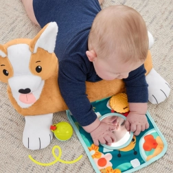 Podloga za trbuščić u obliku simpatičnog psića nudi djeci tri različita načina igre i razvoja. Idealan za igru na trbuščiću, igru sjedenja i igru maštom. Dio podloge je šuškavi panel i 3 interaktivne igračke, koje pomažu razvijati motoričke vještine i potiču osjet vida, sluha i dodira.