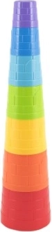 Ova šarena sklopiva piramida donosi djeci puno zabave i učenja u jednom. Sedam plastičnih čašica različitih veličina lako se slaže u visoku kulu ili umeće jedna u drugu – to trenira logiku, strpljenje i finu motoriku.
