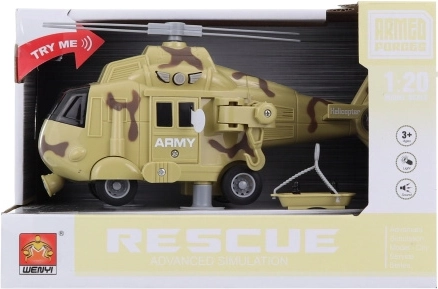Nakon pritiska na gumb helikopter ispušta zvukove i svijetli, što značajno doprinosi realističnom dojmu tijekom igre. Doživljaj je dodatno pojačan priloženim baterijama tipa AG13/LR44, koje su uključene u pakiranje.