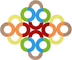 Ova svestrana drvena mozaika nudi beskrajne mogućnosti igre – od gradnje tornjeva i mostova, preko slaganja simetričnih uzoraka, do balansnih zadataka. Robusni, glatko brušeni dijelovi u živim bojama pozivaju na istraživanje i uče djecu usredotočenosti te koordinaciji oko–ruka.