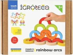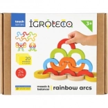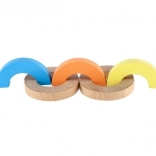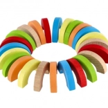 Otkrijte kreativni set za slaganje od kvalitetnog drva – set dužinih lukova s 24 dijela za djecu od 3 godine. Potiče finu motoriku, balansirajuće vještine i kreativno razmišljanje. Djeca mogu slagati u visinu, stvarati šarene uzorke i jednostavne igre te tako razvijati prostornu maštu i strpljenje.
