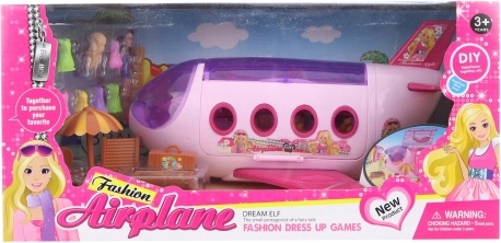 Ovaj ružičasti plastični avion za lutke osmišljen je za zabavne modne i putne scenarije. Zahvaljujući bogatom setu dodataka djeca mogu stvarati vlastite priče, odijevati lutke i pripremiti ih za uzbudljiv let. Kompaktne dimenzije omogućuju lako prenošenje i spremanje.