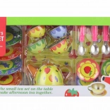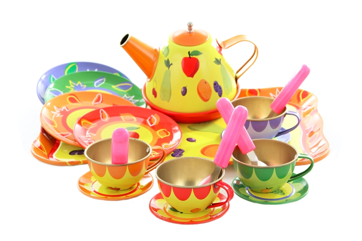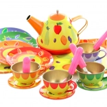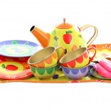 Dječji limeni čajni servis u živim bojama izvrstan je izbor za svaku malu domaćicu ili malog domaćina. Metalno izvedenje je lagano, a istodobno dovoljno izdržljivo za svakodnevnu igru. Zahvaljujući bogatoj opremi, djeca lako mogu prirediti vlastitu čajanku za prijatelje i plišane goste.