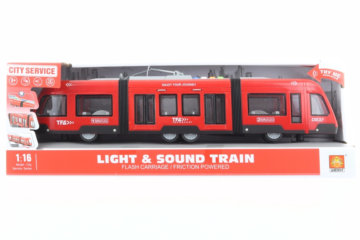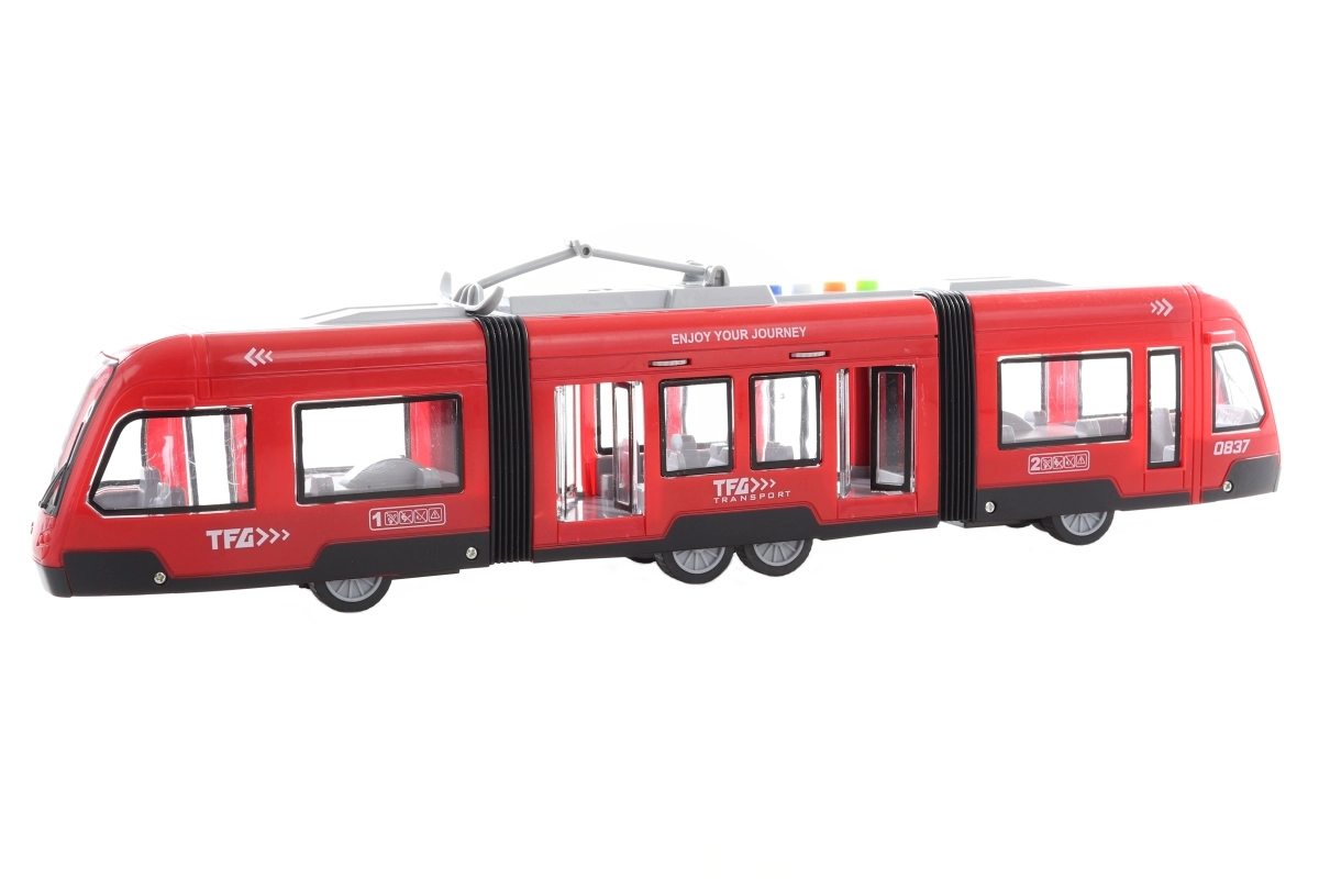 Predstavljamo vam nevjerojatan crveni tramvaj na baterije namijenjen svakom malom ljubitelju gradske vožnje. Ovaj model izrađen je od kvalitetne plastike i nudi svjetlosne i zvučne efekte, koji donose realističan doživljaj vožnje tramvajem.
