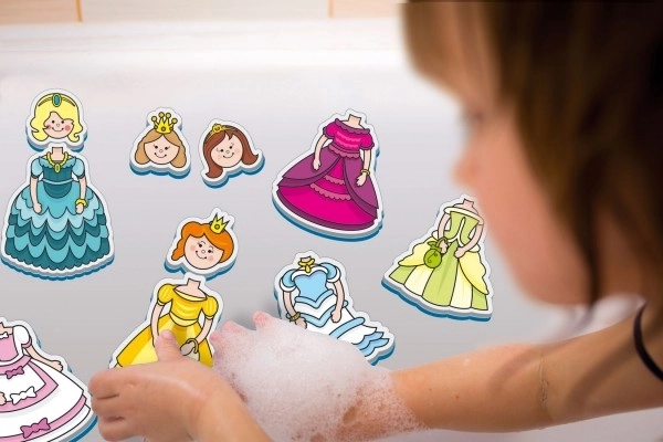 Pozovite princeze u svoju kupaonicu s ovim sjajnim setom vodolepki. Dovoljno ih je namočiti i lako se lijepe na kadu ili pločice. Zbog jednostavnog premještanja i skidanja, djeca mogu stvarati nove priče svakog trenutka.