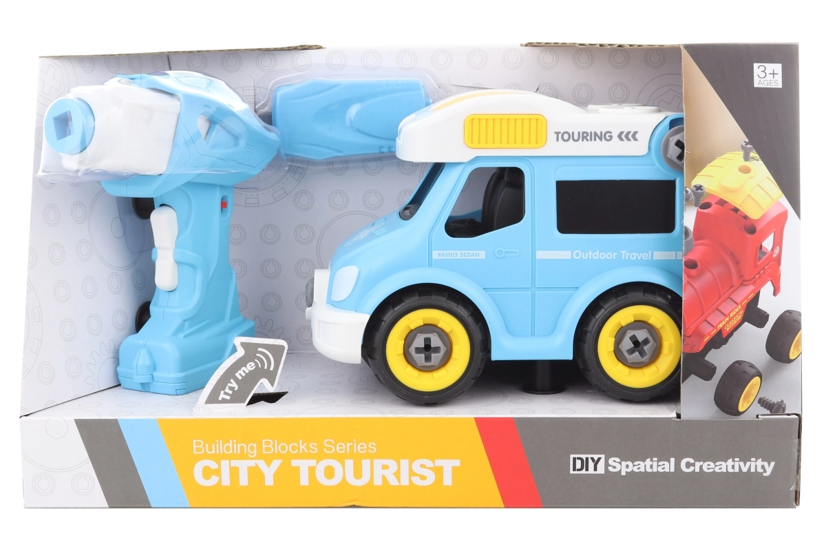 Otkrijte pametnu igračku koja spaja svijet slaganja i daljinskog upravljanja. Djeca karavan najprije zaviju vijcima pomoću priloženog odvijača ili bušilice. Iz bušilice zatim izvade motor, umetnu ga u karavan i odmah imaju spremno vozilo za RC upravljanje naprijed i natrag. Karavan dodatno reproducira realistične zvukove, zahvaljujući kojima je igra još zabavnija.