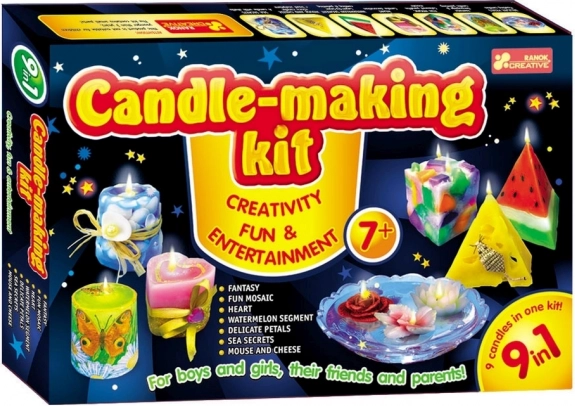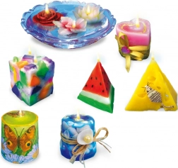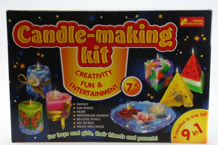 S ovim velikim paketom možete izraditi do 9 svijeća u udobnosti vlastitog doma. Različite boje i oblici svijeća (srce, lubenica, morska, plutajuća, sir i miš, mozaik itd.). Paket sadrži sve potrebno za izradu (parafin, kalupe za lijevanje, boje, fitilje, akrilne boje, ljepilo, šljokice, staklene perle, satenske vrpce itd.). Set sadrži npr. voštanu bazu, šablone, čašice, kalupiće, žicu, perle, školjkice, ukrasnu salvetu, boje, vrpcu, ljepilo, špagu, voštane bojice i još mnogo toga. Dimenzije pakiranja 30 x 44 x 6 cm. Dob 7+. PROIZVEDENO U EUROPI