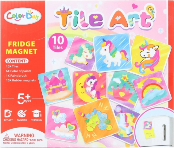 Otkrijte zabavni set za djecu za izradu magneta za hladnjak. Pakiranje sadrži 10 porculanskih pločica, 10 magneta, 6 boja i kist – sve što je djeci od 5 godina potrebno za stvaranje vlastitih originalnih dekoracija.