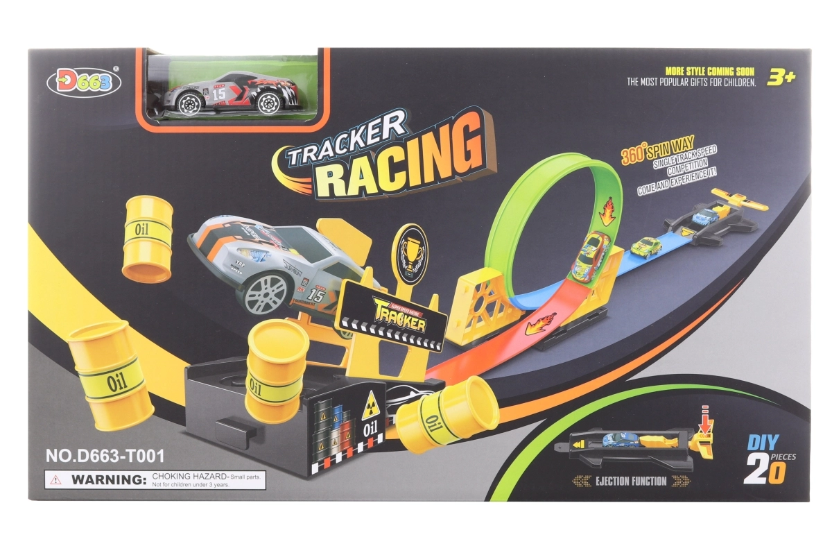 Lansirna staza s metalnim autićem. Duljina staze cca 125 cm. Dimenzije pakiranja cca 38 x 22 x 6 cm. Dob 3+