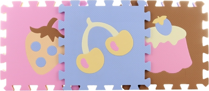 Pjenaste puzzle Poslastice: 9 dijelova 28×28 cm, debljina 0,7 cm. Mekana, periva, protuklizna podloga za djecu, prigušuje buku i izolira od hladnoće.