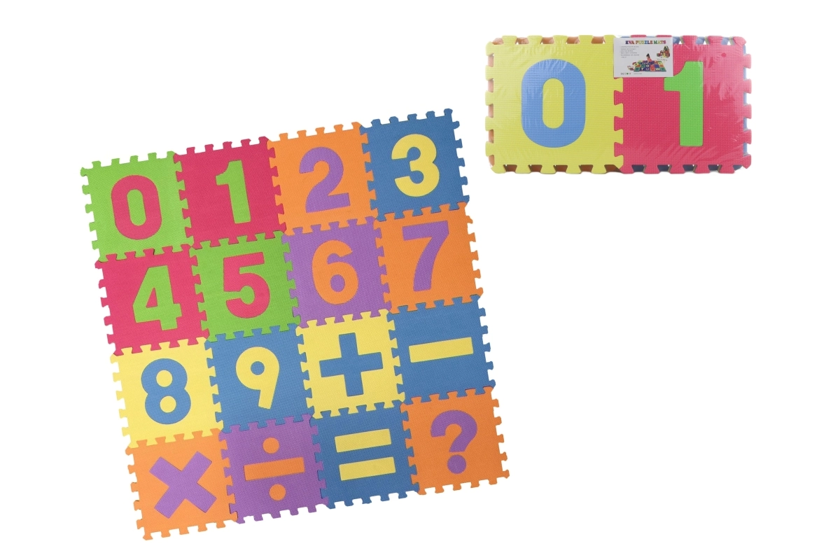 Pjenasta podloga s raznobojnim oblicima i brojkama u sredini koje se mogu vaditi i umetati kao puzzle. Sjajan dodatak za igru vaše djece, a ujedno služi i kao zaštita od hladnoće koja dolazi s hladnog poda. Dimenzije jedne ploče cca 30 x 30 x 0,9 cm. Dimenzije pakiranja cca 58 x 30 x 6,5 cm. Dob 3+