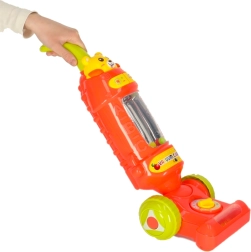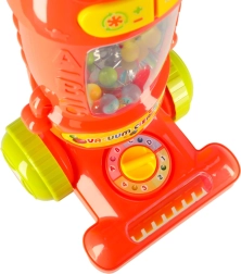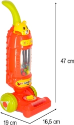 Ovaj dječji štapni usisavač u boji maline idealna je igračka za male pomagače u kućanstvu. Zahvaljujući svjetlosnim i zvučnim efektima djeluje kao pravi uređaj i djeci daje osjećaj da sudjeluju u svakodnevnim poslovima. Unutra se nalaze šarene kuglice koje se tijekom rada podižu i padaju, što igru čini još privlačnijom.