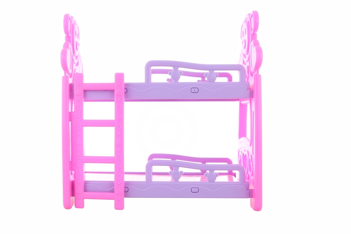 Ovaj plastični krevetić na kat za lutke izvrstan je dodatak dječjoj sobi. Zahvaljujući kompaktnim dimenzijama stane u većinu kutaka za igru i nudi dovoljno prostora za dvije lutke odjednom. Konstrukcija je lagana, ali stabilna, pogodna za svakodnevnu igru.