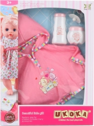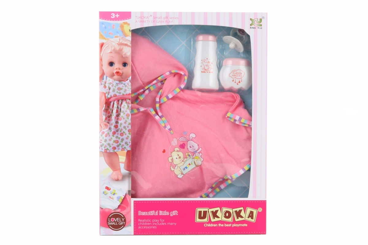 Ovaj univerzalni set dodataka za lutku veličine 45 cm sjajan je dodatak svakoj dječjoj kolekciji. Zahvaljujući ponču, dudi i bočicama djeca mogu glumiti brigu o bebi i razvijati svoju maštu.