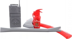 Set za male vatrogasce sadrži sve potrebno za igru spašavanja. Vatrogasni prsluk, walkie-talkie, sjekira, poluga i aparat za gašenje požara osiguravaju sate zabave za svakog malog hrabrog junaka.