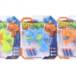 Zabavni plastični pištolj u obliku dinosaura koji ispaljuje pjenaste metke s vakuumskom/prisavnim vrhom. Idealan za sigurnu igru kod kuće i na otvorenom. Pakiranje sadrži pištolj i 3 pjenasta metka s prisavkom. Jednostavno upravljanje, lagana konstrukcija i sigurna zabava za djecu od 6 godina.